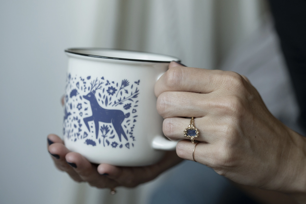 A PORTRAIT arany gyűrű azoknak készült, akik nemcsak egy ékszert, hanem egy történetet szeretnének viselni. A kézzel készített 14 karátos arany részletek és a különleges csiszolású zafír együtt a klasszikus szépség és az önkifejezés időtlen szimbólumává válnak.