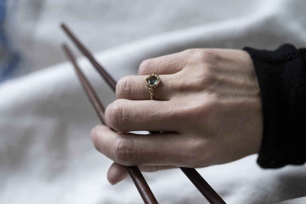 REEF DOUBLE arany gyűrű – ametiszt, smaragd