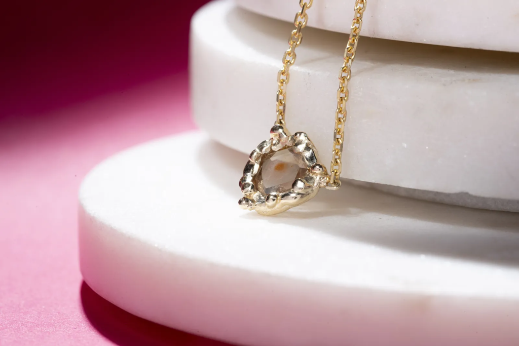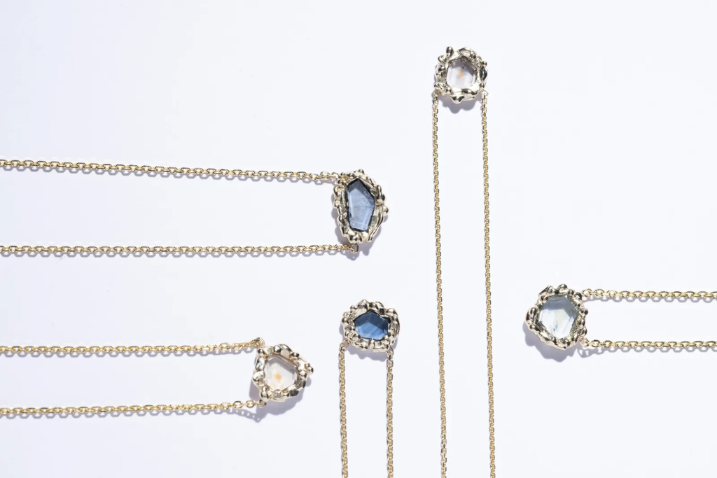 A nyaklánc 14 karátos aranyból készült, gondos kézműves munkával. Az arany meleg fénye tökéletes keretet biztosít a zafír természetes árnyalatainak, miközben a letisztult forma modern eleganciát sugároz. Ez az ékszer egyszerre visszafogott és karakteres, így ideális választás mindennapi viselethez és különleges alkalmakra is.