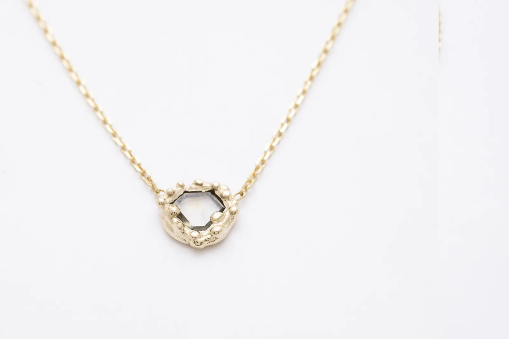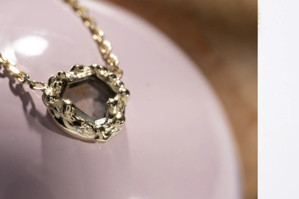 A nyaklánc 14 karátos aranyból készült, gondos kézműves munkával. Az arany meleg fénye tökéletes keretet biztosít a zafír természetes árnyalatainak, miközben a letisztult forma modern eleganciát sugároz. Ez az ékszer egyszerre visszafogott és karakteres, így ideális választás mindennapi viselethez és különleges alkalmakra is.