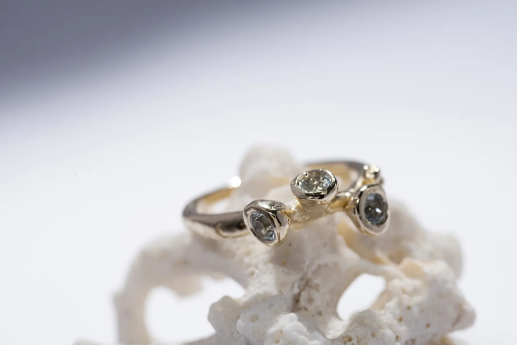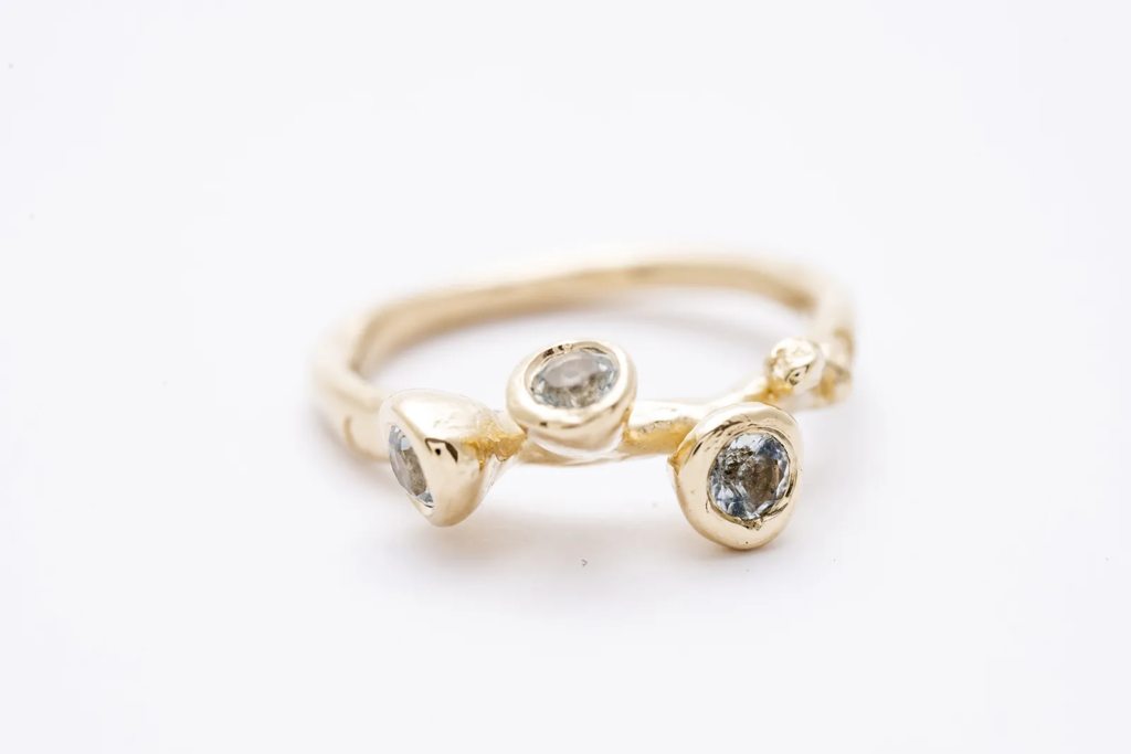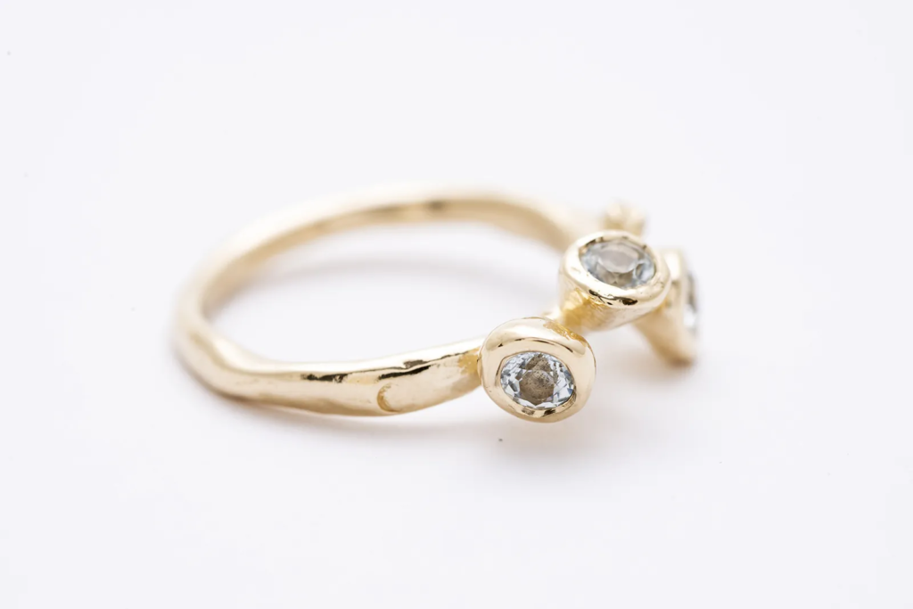 A REEF arany gyűrű három akvamarinnal önmagában is különleges, de más gyűrűkkel kombinálva is izgalmas megjelenést nyújt. Tökéletes választás, ha egy olyan arany gyűrűt keresel, amely egyszerre elegáns, természet ihlette és igazán egyedi.