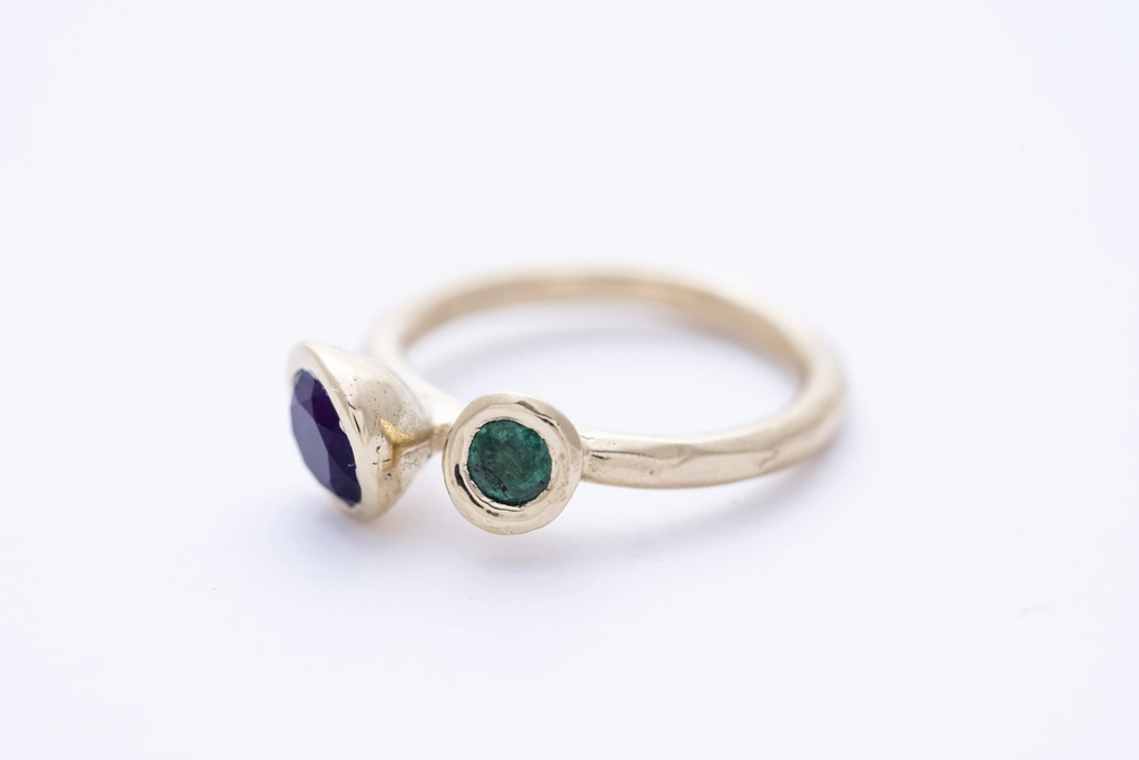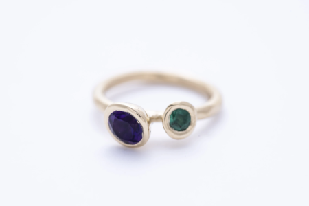 REEF DOUBLE arany gyűrű – ametiszt, smaragd