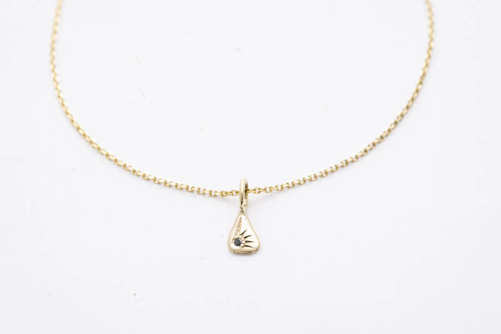 A nyaklánc éke egy különleges fekete gyémánt, amely visszafogott, mégis erőteljes karaktert ad az ékszernek. A sárga arany meleg fénye és a gyémánt mély, bársonyos árnyalata tökéletes kontrasztot alkot, így ez az arany ékszer egyszerre modern és időtlen.