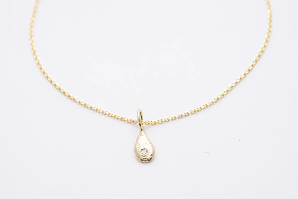 A nyaklánc medáljában egy ragyogó fehér gyémánt kapott helyet, amely tiszta fényével és időtlen szépségével az ékszer fénypontja. A gyémánt finom csillogása elegáns kontrasztot alkot a 14 karátos arany meleg árnyalatával, így a nyaklánc egyszerre klasszikus és modern hatást kelt.