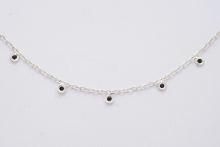 A SPARK ezüst nyaklánc a csillogás iránti szenvedélyből született. A kollekcióra jellemző kifinomult formavilág ebben a darabban is tökéletesen megmutatkozik: a láncszemek közé foglalt 10 db fekete gyémánt finom, mégis karakteres ragyogást ad az ékszernek. A kézzel készült ezüst nyaklánc egyszerre visszafogott és különleges, így tökéletes választás mindennapi viselethez és alkalmi megjelenéshez is.
