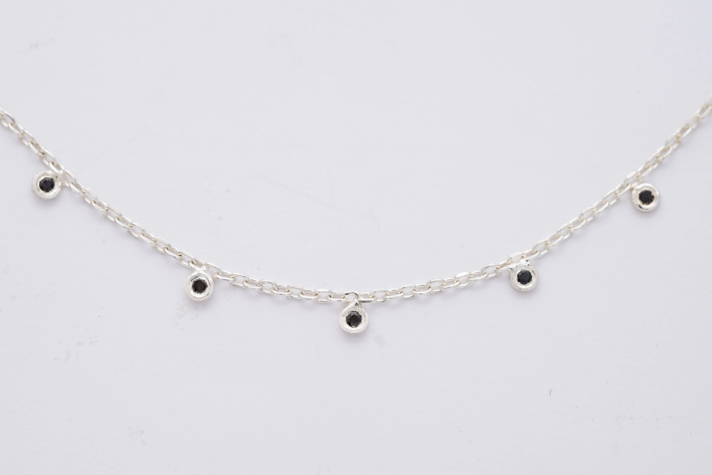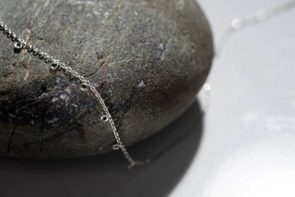 A SPARK kollekció minden darabja kézzel készült, hogy az anyagok valódi szépsége érvényesülhessen. Az ezüst ékszer elegáns alapot ad a gyémántoknak, miközben a formatervezés gondoskodik az időtálló megjelenésről. A fekete gyémántok ritmusa a láncon finom egyensúlyt teremt a klasszikus és a kortárs stílus között.