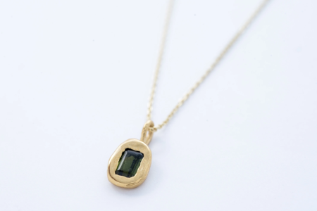 A SUCRÉ arany nyaklánc a modern elegancia és a finom játékosság tökéletes ötvözete. A kifinomult, mégis könnyed ékszer központi eleme egy cushion csiszolású, lenyűgöző mélyzöld turmalin. A drágakövet finoman kidolgozott arany foglalat öleli körbe, amely kiemeli természetes szépségét és különleges árnyalatait. Az ékszer minden apró részlete gondos kézi munkával készül, hiszen minden általam alkotott arany ékszer egyedi és különleges figyelmet kap.