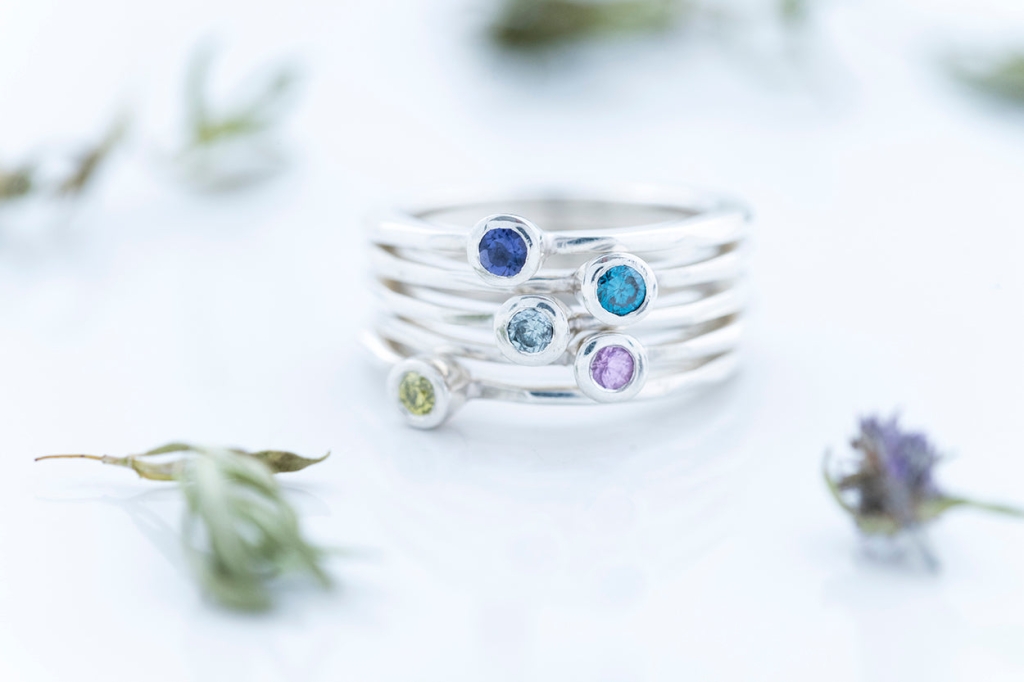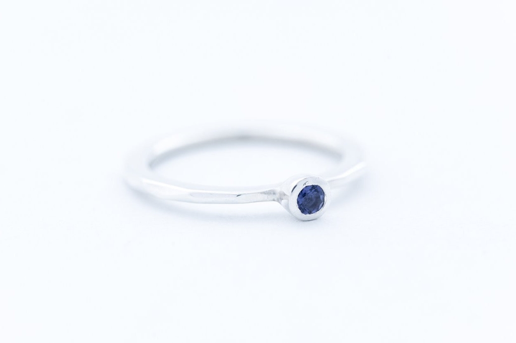 Each FAZETTE SOLITAIRE ring features a single beautifully bright colored iolite, contrasted by the cool-toned Sterling Silver base.