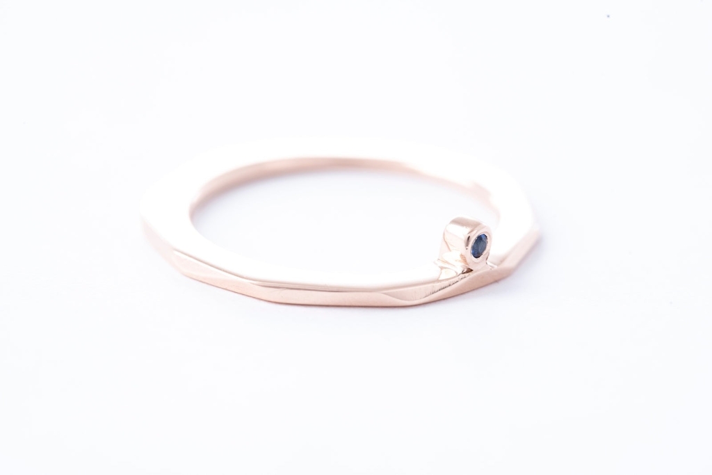 Each deluxe FAZETTE SOLITAIRE ring features a single beautifully bright sapphire, contrasted by the rose gold base.